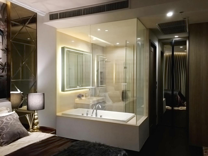— это триплекс, внутри которого зафиксирован слой смарт-пленки, обеспечивает повышенную прочность и долговечность. Стекло устойчиво к воздействию влаги и грязи, имеет степень защиты IP65, что делает его идеальным для использования в ванных комнатах, душевых кабинах и бассейнах. Наше производство позволяет создавать смарт-стекло любых форм и размеров, с необходимыми отверстиями и вырезами.
